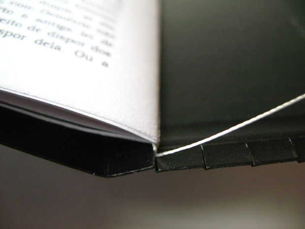 Convertir todas las páginas del folleto previamente envuelto a la izquierda, con la cadena colgando en la ranura de la parte inferior.
