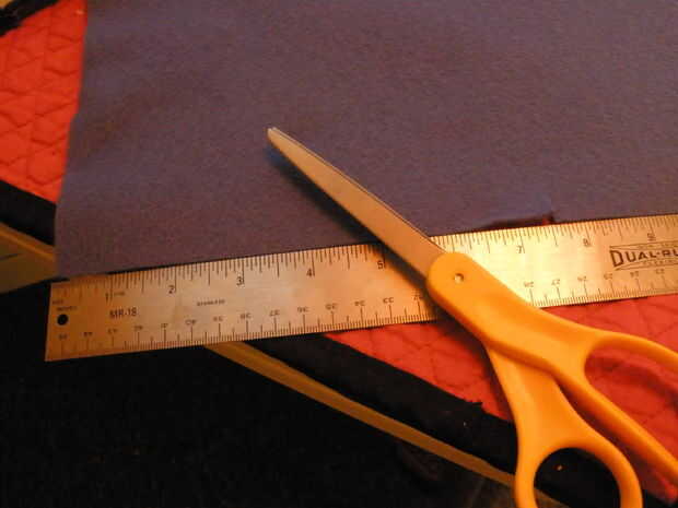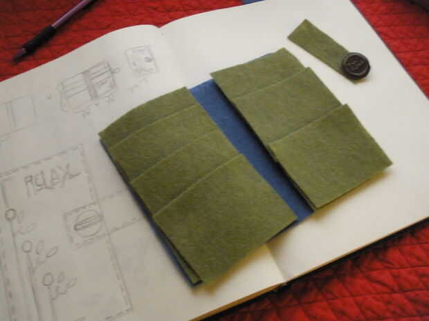 También de su color correspondiente, corte cinco bolsillos que miden 3.5" x2.5" para los bolsillos y una tira que mide 1.5" x3.5" para el botón correa thingie.