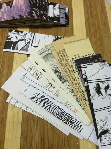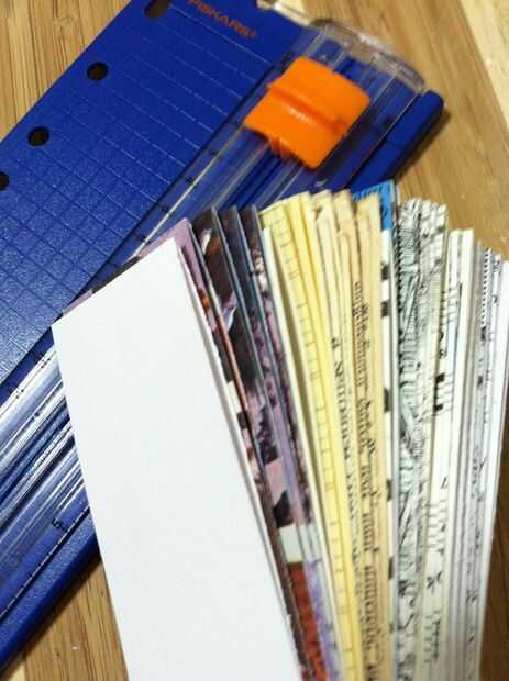 mientras que la cubierta se está secando, ordenado a traves de mi escondite de impresionantes páginas he salvado de otros proyectos de libro. me gusta un buen surtido de fotos entre mis páginas en blanco, como de los lectores de los niños de los años 50, o palabras gigantes en libros pequeños, tal vez papel, páginas, análisis de huellas dactilares, páginas de libros de texto de ciencia, musicsheet, velo, páginas de mag de moda de alta costura, mapas topográficos, cuentos en otros idiomas, diagramas, manifiestos... usted consigue la idea. Mida la altura de página que desee - en este caso dejé sobre un borde de 1/8" de arriba a abajo, por lo que las páginas a sentarse un poco dentro de la cubierta. luego cortar lejos. no te preocupes el lado opuesto a la columna vertebral, como le recorte más adelante.