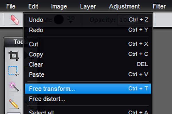 Entonces usé Edición--> Transformación libre para cambiar los tamaños y posiciones de cada elemento individual.