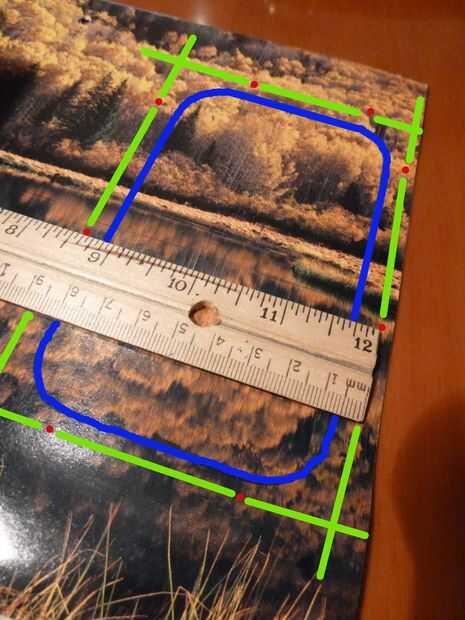Instrucciones para agregar foto multicapa a muelle: véase la ilustración 1, usted comenzará tomando la base de la caja de plástico del ipod y usarlo para trazar la línea azul, la siguiente medida el rojo puntos dos en cada lado (distancia opcional). Ahora Alinee el palo mesuring los puntos de RED y crear las líneas verdes. Utilice las tijeras para cortar a lo largo de la línea verde. Desde entonces había que utilizar la parte de afuera de la caja para trazar la línea azul es más grande y luego el interior de la base. Así que doble la foto, recorte un agujero dentro de la línea azul y cortar a lo largo de él teniendo cuidado de cortar alrededor de un cuarto de pulgada en su interior. Una vez que todo se corta utilice el palillo del pegamento para pegar en los lugares apropiados.