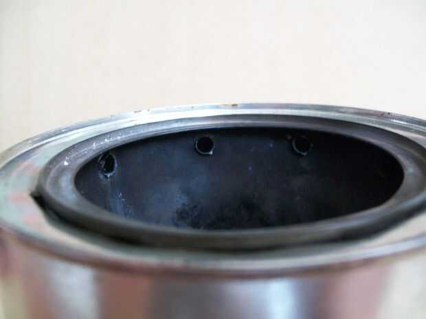 Nota: este paso es muy importante. Tener mucho cuidado cómo se inserta este poder dentro de la otra. Ser paciente. Vuelta la grande puede e intenta insertar el interno puede en varias posiciones estando inclinado para acomodar las fichas en su posición. Todas las pestañas que se han "doblado" inserto que interno puede en una posición inclinada y presione un poco más hasta que se "en". Luego, pulse en él hasta que es colocado dentro de la lata grande como en la figura 1, y descansa en el borde, aunque presionado por las fichas en posición. Una vez en posición, deberá verse como en la figura 4 cuando se mira desde la parte inferior.