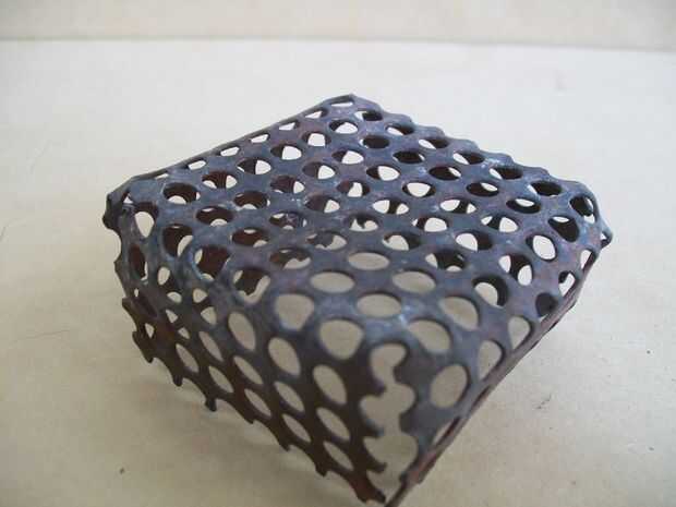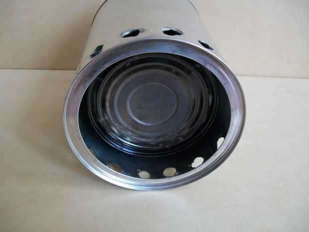 Para el interior, encontrará un "alto" puede donde le caben un atún precisamente pero sin presionar demasiado y donde el atún puede no pasará. En mi caso he encontrado que un "Milo" luz puede que es una mezcla de chocolate. En este puede perforar 16 1/4" orificios a 1 cm del fondo y 8 1/4" a 1 cm desde la parte superior (los de arriba se muestran en la figura 1. Lamentablemente los que en el fondo son difíciles de mostrar). Además, en un depósito de chatarra, encontrar algunos frío perforada gruesa m laminaron la hoja (me resulta más resistente que la malla de acero que he visto en algunos proyectos) y hacer una malla que se doblará como se muestra en la figura 2. Esta malla debe reposar un poco por encima de los agujeros inferiores de la can con el fin de permitir que el aire fluya hacia arriba y las cenizas para caer por debajo de los orificios y en la parte inferior de la lata. Una vez que esta pieza está terminada y colocada en el poder se verá como en la figura 3. El poder interior está acabada. Ahora bien, insertarlo en el exterior puede en las fichas preparadas para lograr un buen sellado.