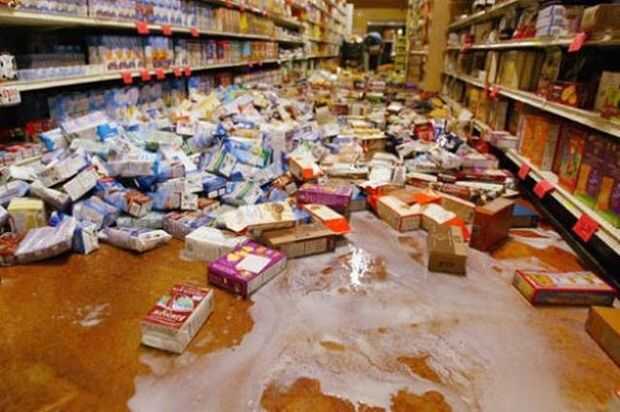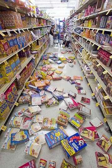Si alguna vez han escuchado la frase "limpieza en pasillo 2" mientras estabas en el pasillo 2 puede haber presenciado uno de los más clásicos líos de todos los tiempos. Tiendas de comestibles están bastante llenos de suministros para hacer líos. Convenientemente, tiendas de abarrotes también tienen pisos. Como comentamos anteriormente, pisos prácticamente se hacen para hacer el lío, así que supondré que el procedimiento es bastante claro.