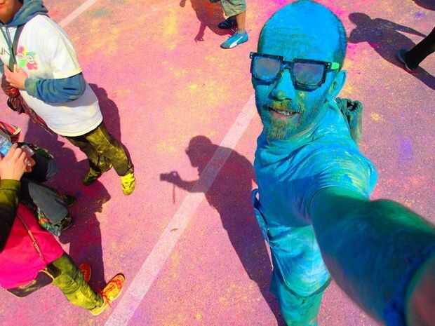 El Color se ha convertido en todo un acontecimiento popular en América del norte en los últimos años y ofrece un tipo de desorden de ejercicio alternativo. Este evento toma inspiración de una tradicional ceremonia religiosa hindú llamada Holi. Color es uno de los más divertidos para hacer un lío mientras hace ejercicio con cientos de otras personas. No ser engañado, el hombre tomando un selfie no es miembro del desorden que hace de la tropa, el Blue Man Group. De hecho, es mi buen amigo Silvio Tinello, un participante en una reciente prueba de color.