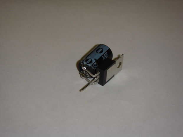 De la soldadura de la negativa del condensador para el emisor y el positivo a la base del transistor.