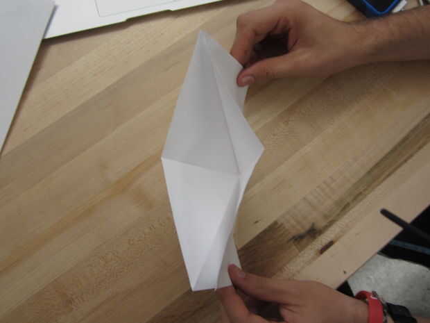 Doble el papel en cuartos y luego desdóblela. Debería verse como la imagen.
