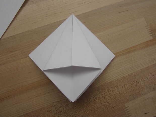 doblar los bordes de las alas de la parte superior del modelo en el pliegue de centro y desdoblar.
