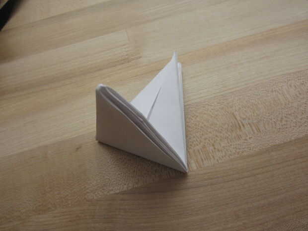 Doblez justo en el centro junto a la esquina de los triángulos que acaba de hacer y luego desdóblela.
