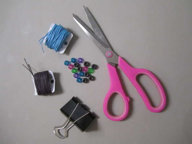 Para hacer el llavero de mariposa, necesitarás: tijeras perlas de pony (o tipo de grano similar) abrazadera de la oficina (o cinta fuerte) cordón trenzado (u otro tipo de cable grueso)