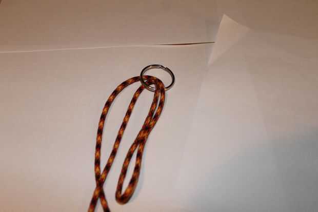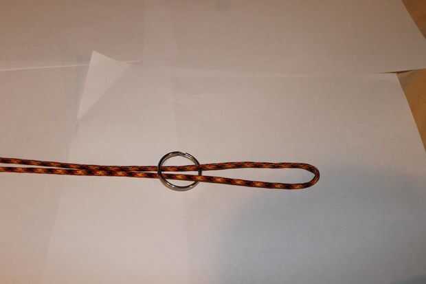 preping para la vinculación es fácil simplemente el paracord del doblez por la mitad y poner a través del anillo y doble a la longitud preferida
