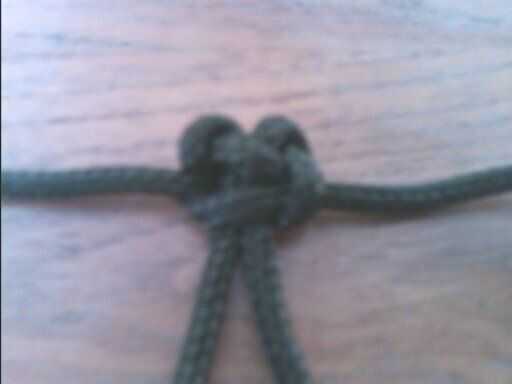 Baisically, ahora que tienes que hacer exactamente lo que hiciste en el paso 2... pero al revés. Por lo tanto, con el pedazo derecho de cuerda vaya debajo de la media y sobre la pieza izquierda. Luego tome el pedazo izquierdo sobre el centro y a través de cordón derecho. Ahora todo lo que necesitas hacer es paso 2 otra vez, entonces este uno otra vez un par de veces hasta que ha hecho unos pocos centímetros de stich.