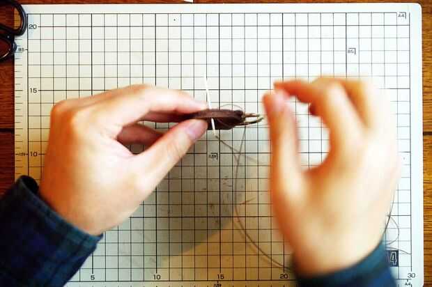 Después de que el pegamento se haya secado, cosa con la cuerda de la cera.