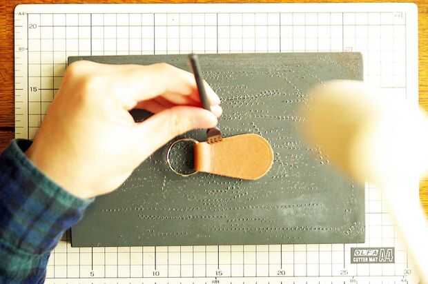 hice una etiqueta llavero esta vez!!!!Desafío que es fácil, por favor!!Paso 1: Cortar a lo largo de una plantilla de cuero Corta cuero a lo largo de una plantilla.Cuando corté la parte de la curva, corté para activar una plantilla.Fácilmente puedo co