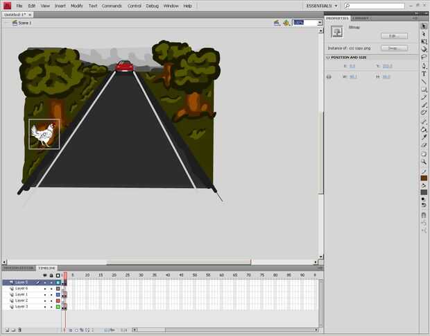 Una vez haya creado su próxima escena ahora es el momento para mover los objetos. Asegúrese de que usted tiene la herramienta Selección seleccionada y luego haga clic y mantenga el objeto que desea mover en la escena. Por ejemplo quiero mover mi pollo en la escena. Así que arrastre el objeto un poco en la dirección que usted quiere que vaya, y luego dejarlo ir. Hacer esto para todos los objetos que desee mover, aunque no se puede mover a la ubicación que quieras todo en una escena o bien no se mueva suavemente. Todo lo que va a hacer es cambiar a que ubicación, puede hacerla más compleja y tiene varias piezas y objetos que se mueven.