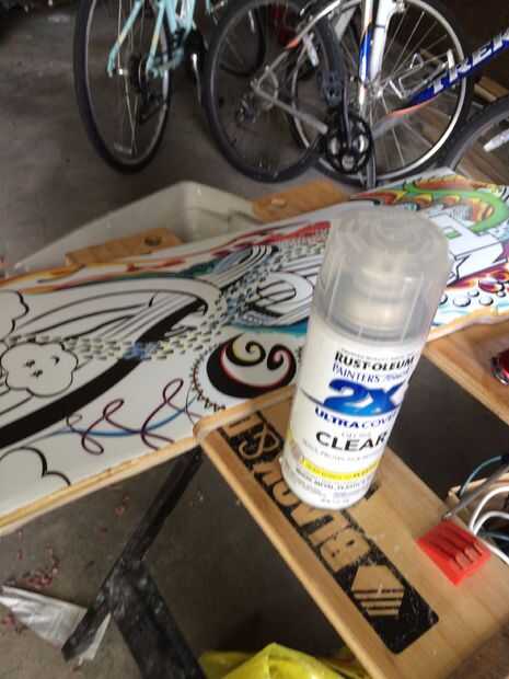 Para proteger el vinilo o cualquier diseño que se ha colocado en el tablero, utilice una pintura de aerosol de sello doble, resistente al agua y protege de la luz solar, no amarillo a diferencia del poliuretano y el uretano de spar y puede adherir el vinilo fácilmente.