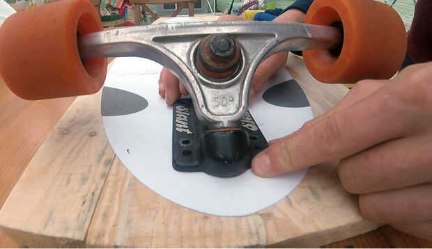 1. Primero quiere asegurarse de que los agujeros estén alineados, poniendo sus camiones otros agujeros en la plantilla sólo para asegurarse de que el negro puntos alinear con los agujeros en los camiones.