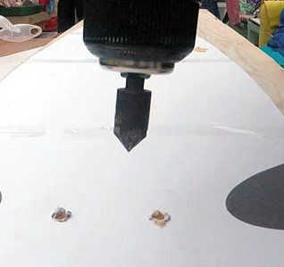 5. A continuación desea utilizar una broca de taladro de mostrador fregadero para que su hardware (cabeza del tornillo) encaja mejor color en la cubierta y se ve mucho más ordenado. No tienes contra los agujeros del fregadero, puede atornillar los pernos en y fregadero en uno mismo con un destornillador porque es sólo una madera suave y la cabeza del tornillo se hundirá con poco esfuerzo pero esto puede resultar en la división de la cubierta. Y no quiere hacerlo en esta etapa.