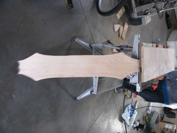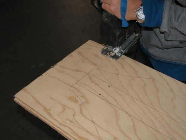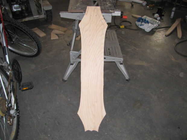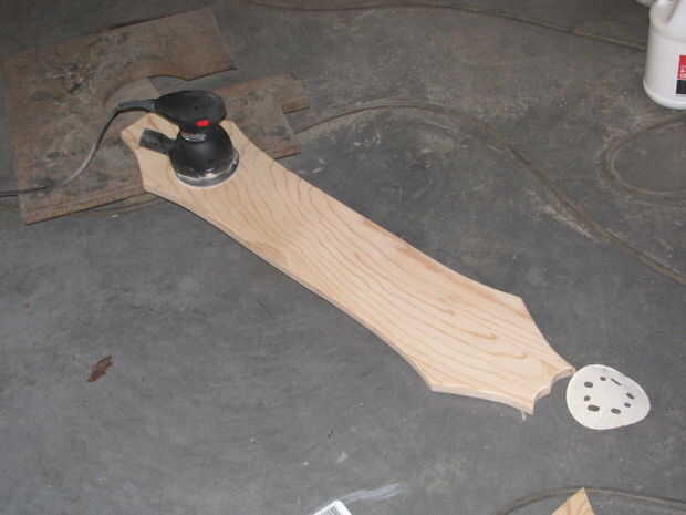 Ahora que usted tiene su diseño en la madera pueden cortarlo hacia fuera. Utiliza una sierra caladora para cortar mina pero puede usar lo que funciona para usted. la arena lo agradable y suave por lo que no hay bordes ásperos. Cuando termine este paso tienes el inicio de tu deck de longboard.