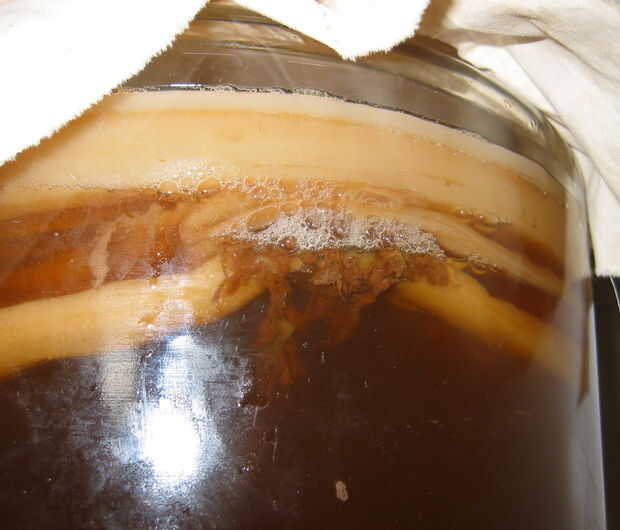 Preparado recientemente después de dejar que las madres dormir en su propio jugo durante mucho tiempo. No hubo tentáculos y el k'cha no tenía sabor a manzana. Pero una botella de lo probado muy apple-icious unas semanas más tarde. Miré y habían crecido tentáculos en la botella.