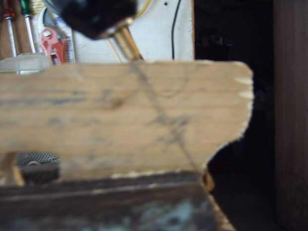 Luego tomar la regla y dibuja una línea paralelo a la parte posterior de la manija en la parte superior (Foto 1) también debería notar que la parte superior de la pinza está sentando en el círculo que ha dibujado en la madera antes. Esto es perfecto porque esto nos ayudará a ocultar parcialmente la pinza para la ropa.