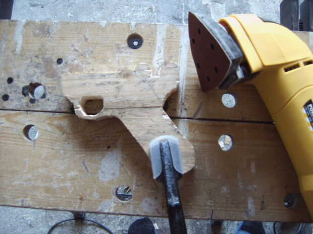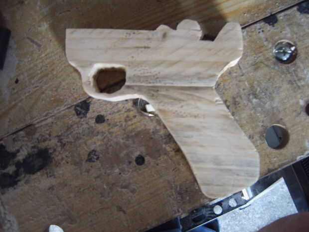 Un paso sencillo. Tome su arma y fijarlo con la abrazadera hacia abajo usando las abrazaderas y un tornillo de banco y luego usar la lijadora eléctrica para lo de la arena. Asegúrese de que la parte superior de la pistola es agradable y suave como los goma fuegos desde allí. Tenga cuidado con los círculos encima de su pistola, se rompen fácilmente cuando se lija a duro.