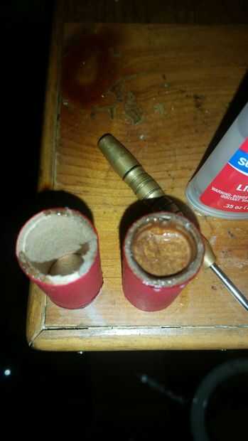 Primero adelante super pegue un enchufe en solamente un extremo de cada una de tus tripas dentro y hacia fuera para asegurar estabilidad. después de secado, coge un palillo de dientes afilado como objeto haga el orificio en el centro de la tripa e Inserte el fusible sobre a medio camino en, pegamento y seco. tu tripa está listo para llenarse con las cosas buenas :D