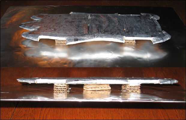 Dos de ellos estaban calientes pegadas y cubiertas en papel de aluminio y el tercero fue utilizado para que el sistema de apoyo que surgió.