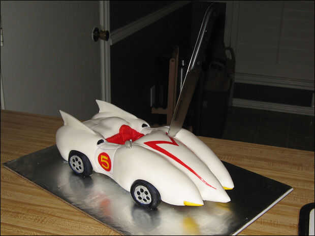 Hice las aletas de fondant, con un pico de diente que se inserta en cada uno que ayude a sostenerlo para arriba y ayudar a asegurar que el coche junto con un poco de agua.