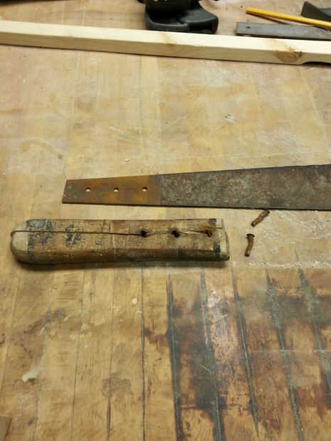 Como se puede ver, este mango de cuchillo de maíz ha visto días mejores. Faltaba uno de los remaches y estaba envuelta en cinta aislante para sujetar juntos. El mango está en tal mal forma hizo una herramienta peligrosa. Es definitivamente cierto más allá del tiempo para reemplazar el mango.