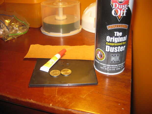 Los materiales que necesitas: > Monedas 2, o dos monedas idénticas > pegamento > papel de lija (Banco amoladora las obras mejor) > polvo apagado (con el poco de paja)
