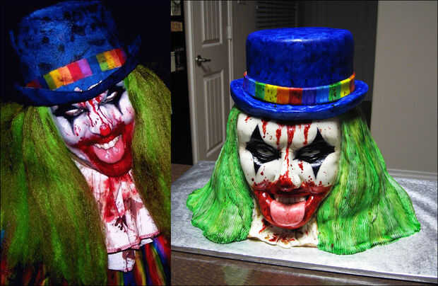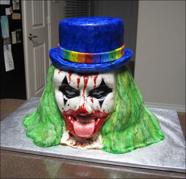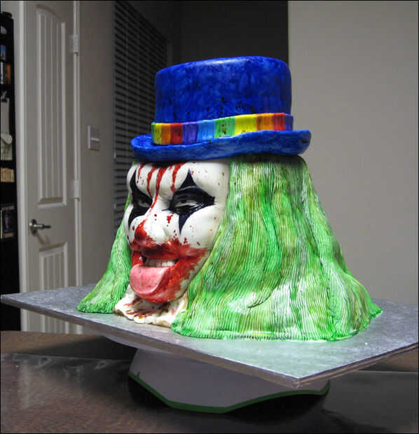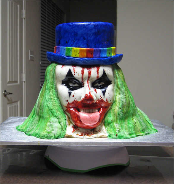 Para Halloween 2010 que hice mal payaso pastel esculpido. Este pastel es un payaso malvado específico, estropea el payaso de la casa rondan en Caddo Mills, TX (hecho para el hombre detrás del payaso). Fue una sorpresa para él y encantó.