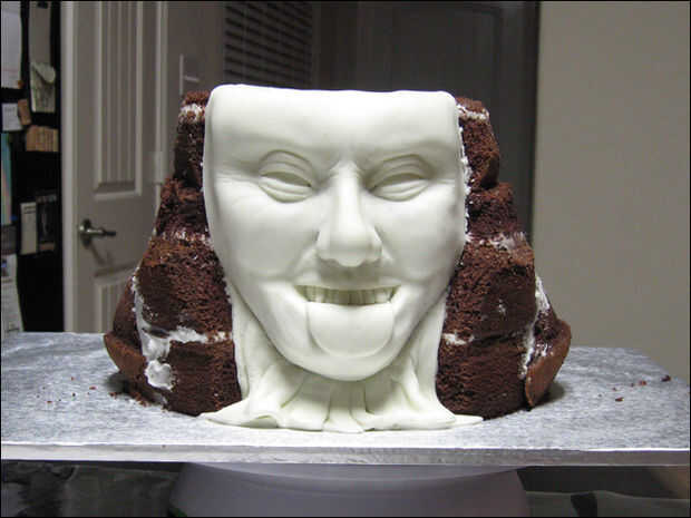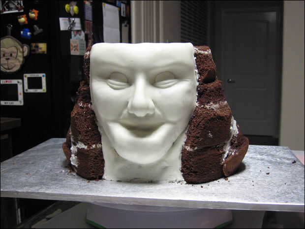 A continuación extienda algunos (fondant) y aplicarlo a la zona de la cara. Uso mis manos para suavizar en todos los rincones y recovecos y luego cortar el fondant extra que se superponen en el área del pelo.