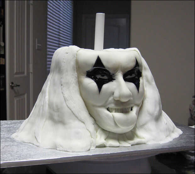 Después de agregar el pelo empujé dovela plástica de soporte por la parte superior del centro de la cabeza hasta que golpeó el tablero de la torta. Luego coloqué el sombrero en este y ayudó a celebrar todos juntos.