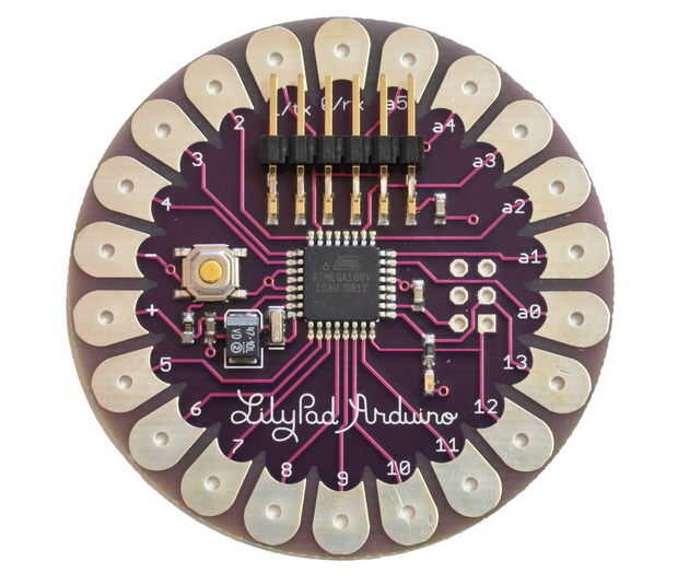 • Placa de LilyPad Arduino (hay diferentes versiones, que generalmente sólo tienen 4 entradas analógicas, así que presta atención y comprar uno en la imagen): funciona exactamente igual que el clásico Arduino UNO, así que puede usar incluso un Arduino Nano, pero preste atención a la tensión necesitada;