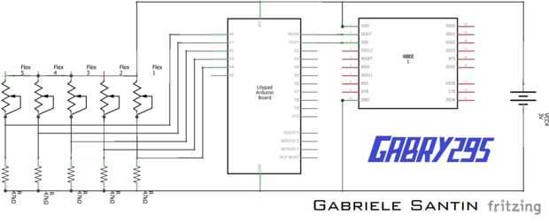 Para hacer el guante de control sugieren primero para elegir la posición correcta de los diferentes componentes, luego conectar todo con la longitud adecuada de cable.