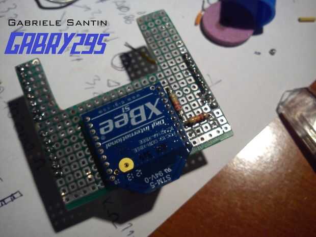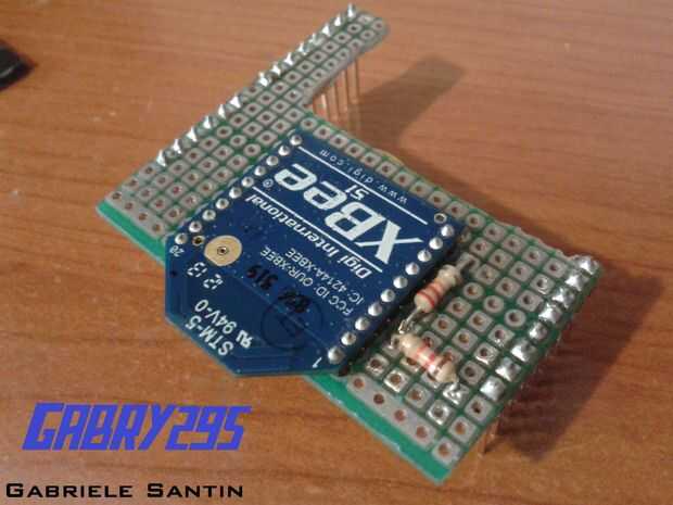 El bricolaje XBee Shield hice utiliza un resistor 12 de KOhm y un resistor de KOhm 22, se puede ver el cableado en las fotos.