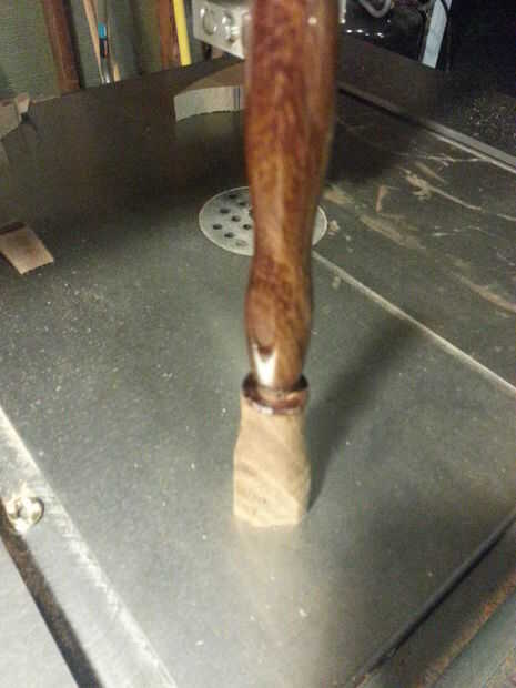 Con el final completo, quitar el torno y recorte el exceso. Prefiero hacer esto a la sierra. Corté justo al borde de la espiga que me volví antes. Una vez cortado, la parte inferior de la arena suave y frota algunas capas de pegamento CA