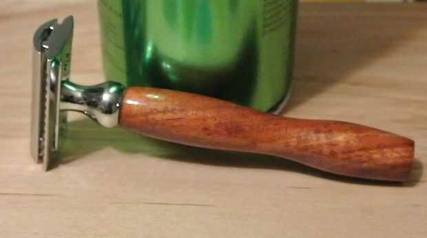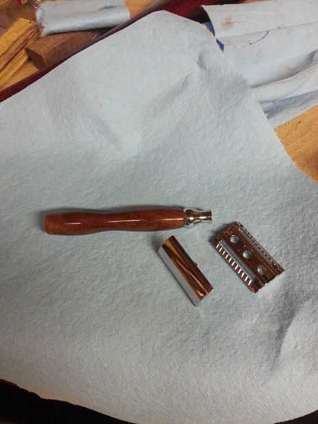 Paso 1. Corte un triángulo de un escritorio de madera. Los lados de este triángulo deben protruir fuera del borde de maquinilla de afeitar de seguridad.Paso 2. Perfore un agujero en el centro del triángulo y pasar un tornillo a través de este agujero