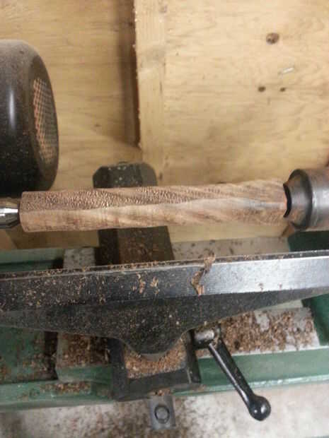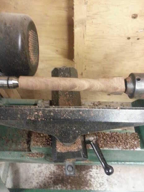 Porque Koa es bastante duro y he limitado a agarre de utilizar un centro muerto cónico a la pieza, he tenido que ir lento hasta que derribado los bordes. Una vez que se redondearon encima un poco, podría acelerar el torno un poco y es redonda.