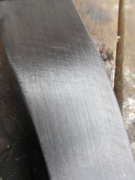 Esta hoja ya he pulido, pero tengo que limpiar un poco el mango. Así que lijar todo hasta el acero desnudo y luego usa acetona para bajar los desechos para que el pegamento se adhiera mejor.