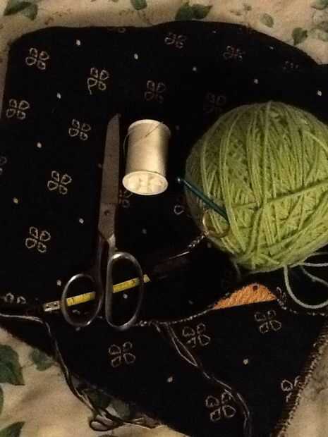 Sobre una media yarda de tela, más me gusta de terciopelo, pero lana o piel falsa o realmente nada funciona. Mejores resultados si la tela es el mismo peso que la parte de ganchillo.