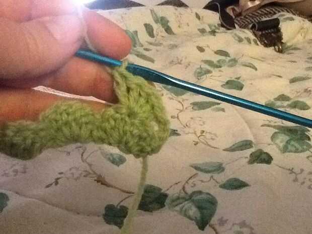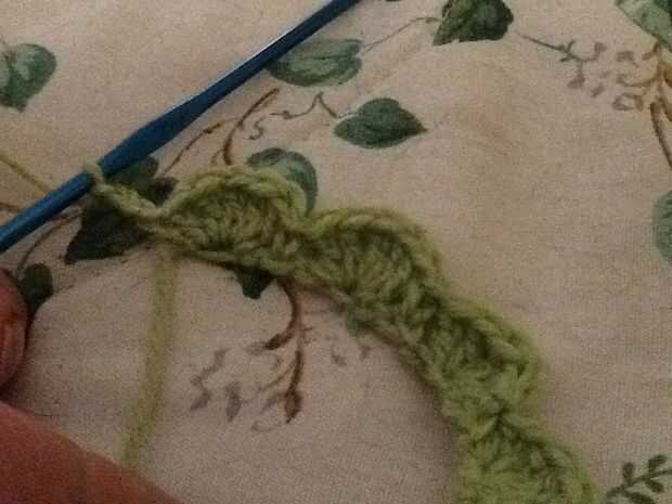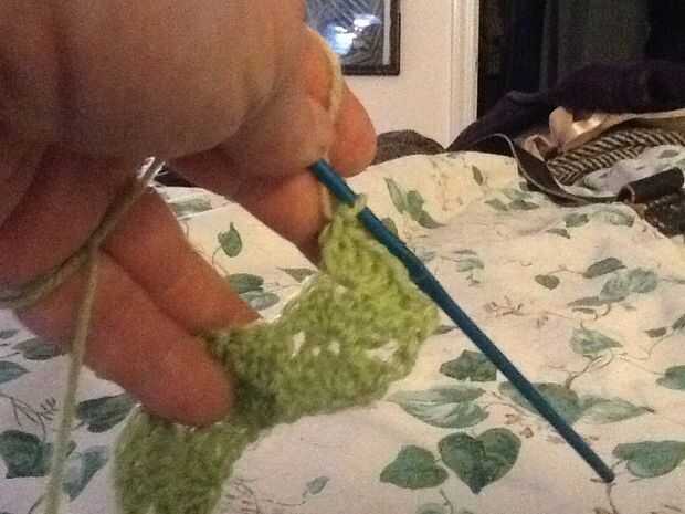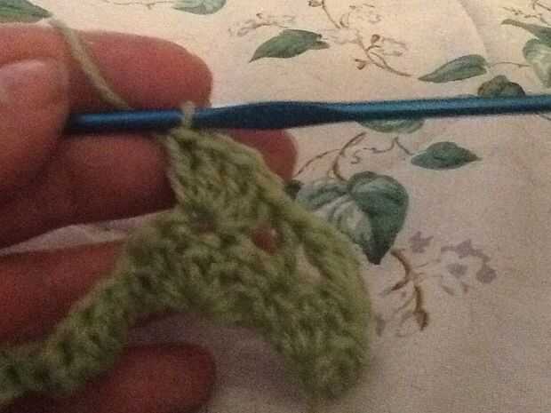 Comience con una longitud de la puntada de cadena en un múltiplo de 4 1 cadena extra. (La imagen muestra 16 1 = 17) Enrolle el hilo sobre el gancho de una vez y hacer un doble crochet en la 2ª cadena del gancho. Hacer ganchillos dobles más 4 en esa misma cadena (primer abanico) hacer un punto bajo en la 2ª cadena del ventilador. Esto cierra el primer ventilador y comienza al segundo. Hacer ganchillos doble 5 (dc) en la 2ª cadena de ganchillo único. Repita este patrón en toda la cadena (salte 1 cadena solo ganchillo en la cadena siguiente, saltar la cadena de 1, 5 doble crochet en la siguiente cadena, saltar 1 cadena, solo ganchillo en la cadena siguiente, saltar 1 cadena, 5 doble ganchillo en la cadena siguiente) hasta llegar al final de la cadena. Ras del último pespunte deben ser un punto bajo. Cadena 3and girar el trabajo a la otra dirección, así que usted puede trabajar hacia atrás a través de lo que usted acaba de hacer. En esta fila será hacer un crochet doble en cada punto bajo y un ventilador de 5 doble crochet en el punto de centro de los ventiladores de la fila anterior. Terminar con un crochet doble en el comienzo de la primera puntada. Cadena tres, gire el trabajo y la 2 (salvo que ahora están haciendo ganchillos doble sobre doble crochets en vez de crochets solo para los puestos).