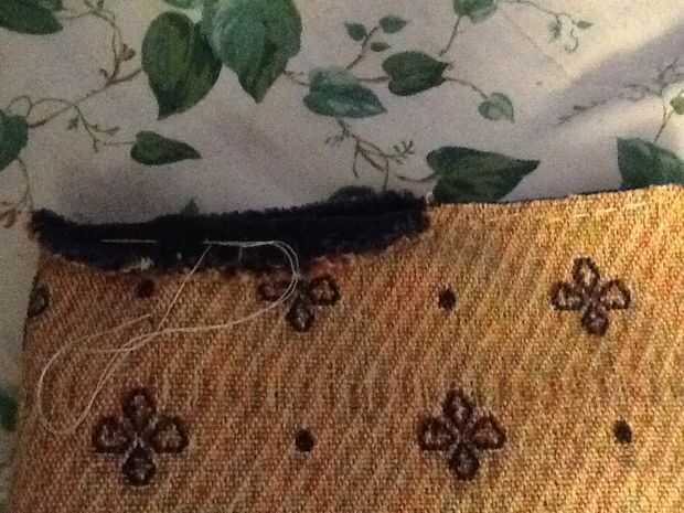 Volver los bordes de las aberturas (ver foto) e hilvanar en su lugar.