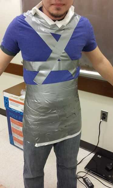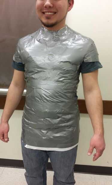 El resto de la camisa con tiras largas horizontales desde la parte inferior a la parte superior con cinta adhesiva. Asegúrese de no hacer bultos o arrugas en la cinta. Producirse golpes prueba a alisar hacia fuera, de lo contrario necesitará reiniciar del paso 2.