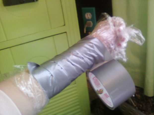 4. tenga cuidado alrededor de sus dedos, asegúrelas con cinta adhesiva si quieres, pero se verá mejor con los dedos separados.