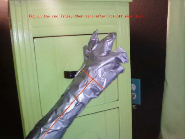 8. cinta el corte en la parte de la muñeca, volver a colocar la mano al antebrazo.
