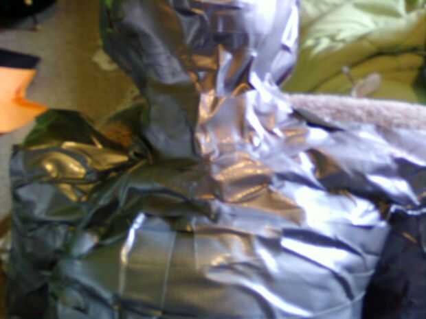4. Tire hacia fuera de esa cabeza de aspecto extraño y jam en los hombros, cinta hacia abajo.