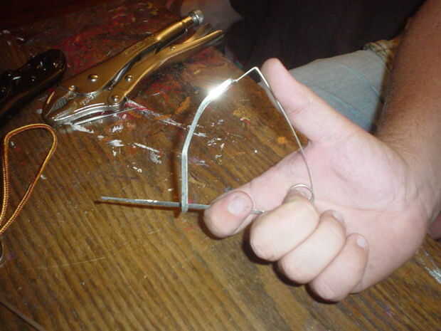 Para usarlo, mantenga su pulgar en el extremo plano mientras agarre el lado de la selección. Si usted hace el bucle lo suficientemente grande, incluso puede meter un dedo allí para obtener un mejor agarre. Empuje hacia abajo con el pulgar. Deslice el pulgar y deje que se vuelva hacia arriba. No olvides tu llave de tensión (no se muestra en las fotos - aquí sólo una mano). Generalmente trato de sobre 8-10, reajustar los pernos y repetir.