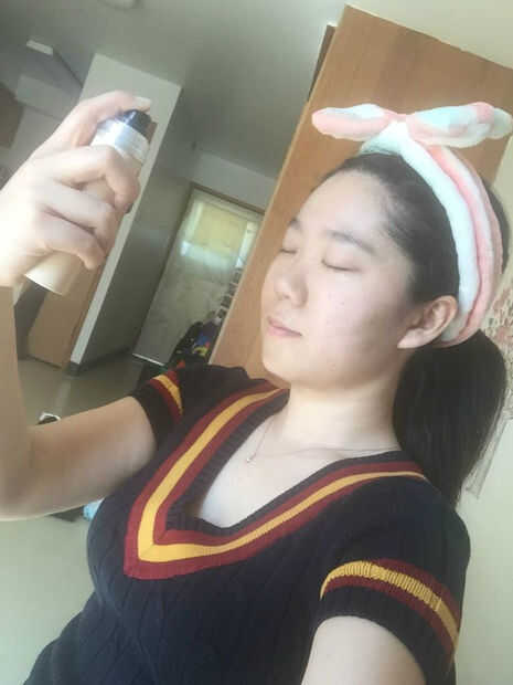 - Mantener su base de aerosol 15-20 cm de su cara para rociar. (Si sólo tienes una Fundación regular, sólo aplicarlo en la cara al igual que aplicar la imprimación). (Figura 5)